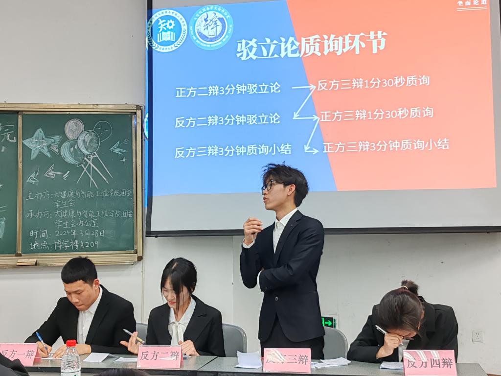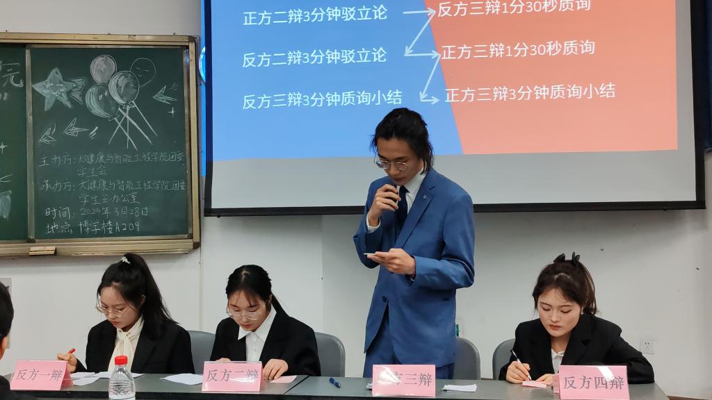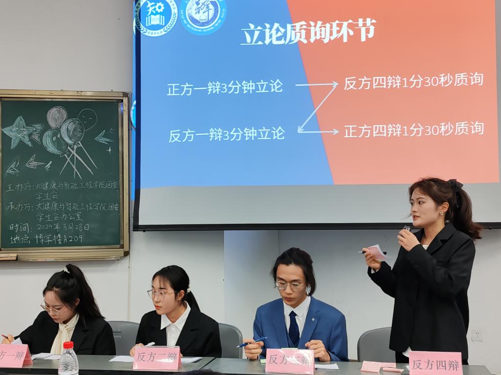 为加强公司文化建设,丰富同学们的课余生活,提高思辨表达能力和团队协作精神,3月28日晚上7时,球盟会在博学楼A209教室成功举办了一场主题为“辩以明思,坐而论道”的辩论赛决赛。公司团委书记周彦宏、辅导员杨浩参加本次活动。