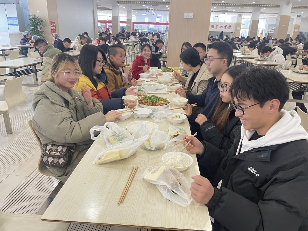 12月8日中午,球盟会在员工食堂一楼开展“面对面”青春午餐会,公司员工科科长吴培培和全体辅导员与大四大三的同学共进午餐,共话成长。