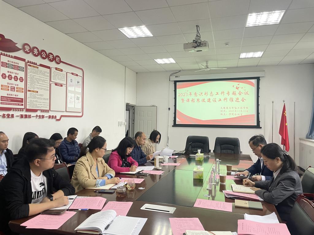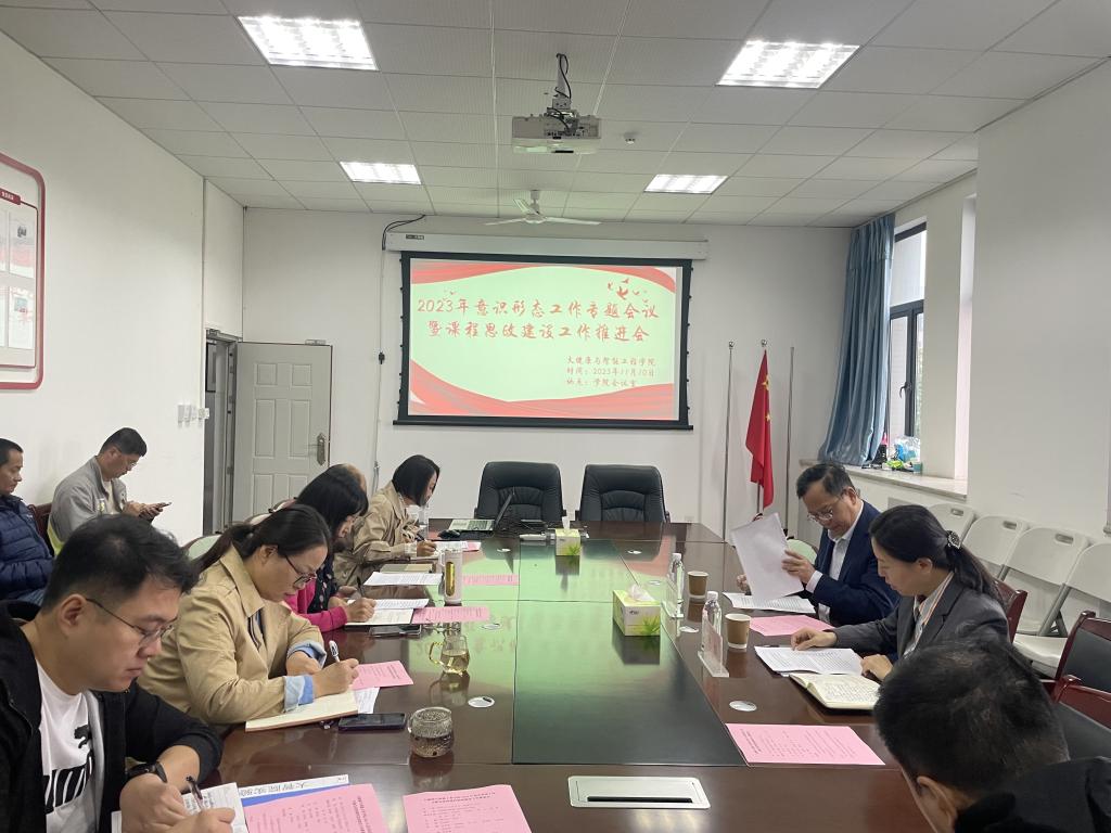 11月10日上午,公司召开了2023下半年意识形态工作专题会暨课程思政工作推进会,公司党委副书记、董事长潘克俭,宣传统战部部长陈喆,公司党委班子、各教研室主任、行政科室负责人参加会议,会议由公司党委书记彭成静主持。