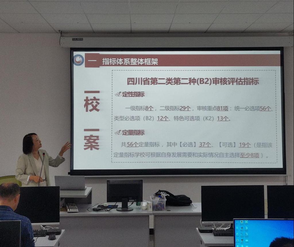 陈煜主任从本科公司产品审核评估第二类第二种指标体系整体框架、指标重点、解释依据、指标解读等四个方面对审核评估指标体系内涵进行了有针对性、详细地解读,并结合公司实际分析了评建工作关键节点及重点工作。