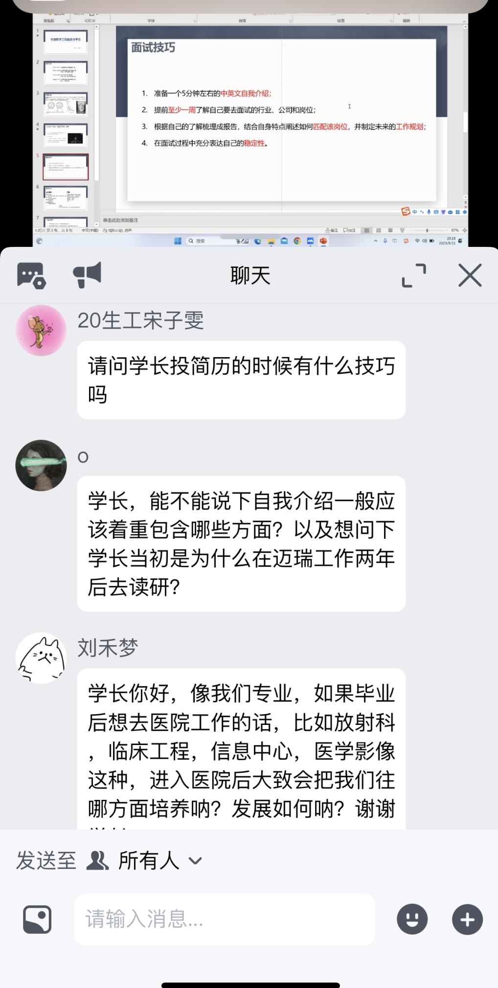 强化协同联动,提升就业能力。由员工科组织牵头,公司辅导员组织开展了职业生规划、就业形势政策、简历制作、求职面试技巧等专题培训;邀请各专业历届优秀学长学姐(唐程、邓茜、胡润、杨丹)毕业生代表开展了各专业就业求职经验分享会,毕业班辅导员点对点指导员工修改完善求职简历。目前正在以“实习+就业”的模式向创业慧康、亚中医疗、海南博鳌医疗发展先行区等单位输送有就业意向的实习员工,校企协同联动提升员工的职业技能和就业竞争力。