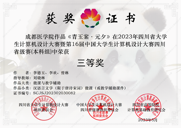 2023年由四川省教育厅主办,宜宾公司承办的四川省老员工计算机设计大赛于5月20-21日顺利举办,全省所有参赛作品1498件,竞争激烈。球盟会官网入口代表队荣获一等奖1项,二等奖1项,三等奖4项,其中4项作品推荐至全国总决赛。由球盟会教师王立、张婷指导的作品《问药——本草纲目纸雕灯》获四川省一等奖。