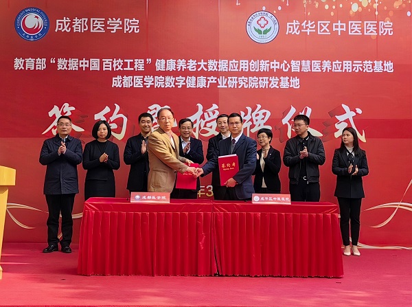 3月21日上午,球盟会官网入口在成华区中医医院举行了教育部“数据中国 百校工程”健康养老大数据应用创新中心智慧医养应用示范基地、球盟会官网入口数字健康产业研究院研发基地签约暨授牌仪式。公司党委副书记、董事长潘克俭,党委常委、副董事长张涛,以及党委办公室、董事长办公室,数字健康产业研究院,球盟会等部门负责人出席。