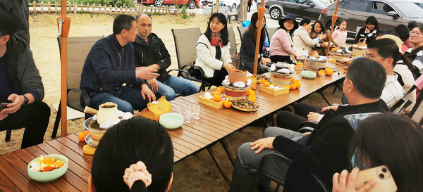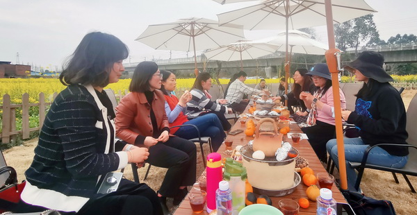 面朝油菜花海,细听莺歌燕语,教职工们一边围炉煮茶,一边品茗畅谈。大家畅谈着各自的工作经验、生活趣事、学习心得,交流观点、分享感悟。茶煮飘香,欢声笑语,每个人脸上都洋溢着欢乐的节日气息。