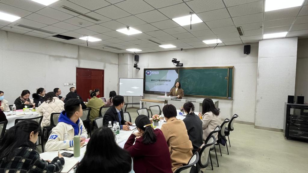 为深入学习贯彻党的二十大精神,落实立德树人根本任务,提升辅导员工作室建设层次和水平,3月1日上午,由员工工作部(处)主办,“红小医”辅导员工作室承办的公司2023年“辅导员工作室建设研讨会(一)”在新都校区图书馆一楼多模态实训中心举行。员工工作部(处)处长李晓庆、护理公司党委副书记王润娟、大健康与智能工程公司党委副书记杨晓庆、员工工作部(处)各科室负责人,以及公司2022年首批立项的4个辅导员工作室主持人、各公司辅导员代表共20余人参加座谈。此次研讨会由杨晓庆老师主持。