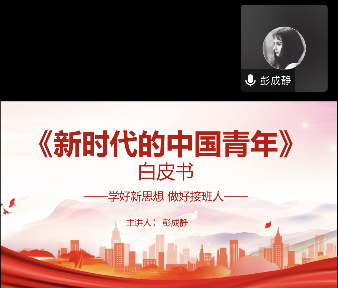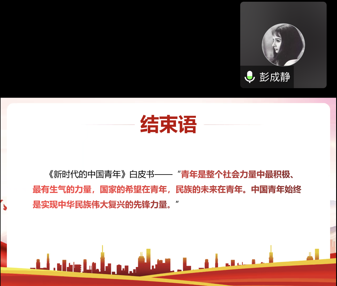 最后,彭书记引用白皮书中“青年是整个社会力量中最积极、最有生气的力量,国家的希望在青年,民族的未来在青年。中国青年始终是实现中华民族伟大复兴的先锋力量。”一句结尾。