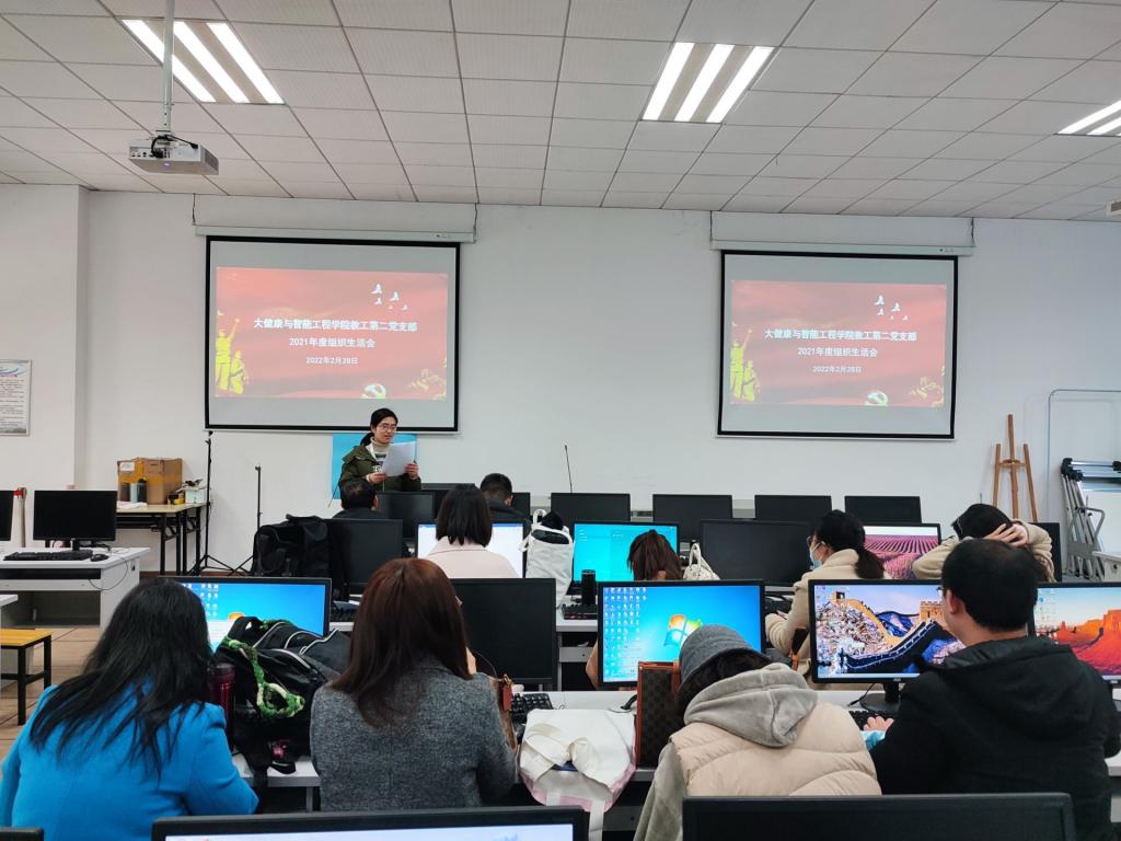 首先五个支部书记代表支部委员会对党支部过去一年的工作进行了总结,汇报了2021年度党支部的工作成果。各党支部坚持以政治建设为统领,深入学习贯彻习近平总书记重要讲话、重要指示批示精神和党中央各项决策部署;注重党支部规范化建设,重视党员发展,推进组织生活不断丰富;着力发挥党员先锋模范作用,扎实服务师生。同时,大家提到党支部在理论学习形式、亮明党员身份以及支部活动创新等方面存在不足,并提出了具有针对性的解决办法。其他党员同志对党支部工作发表了意见和建议。