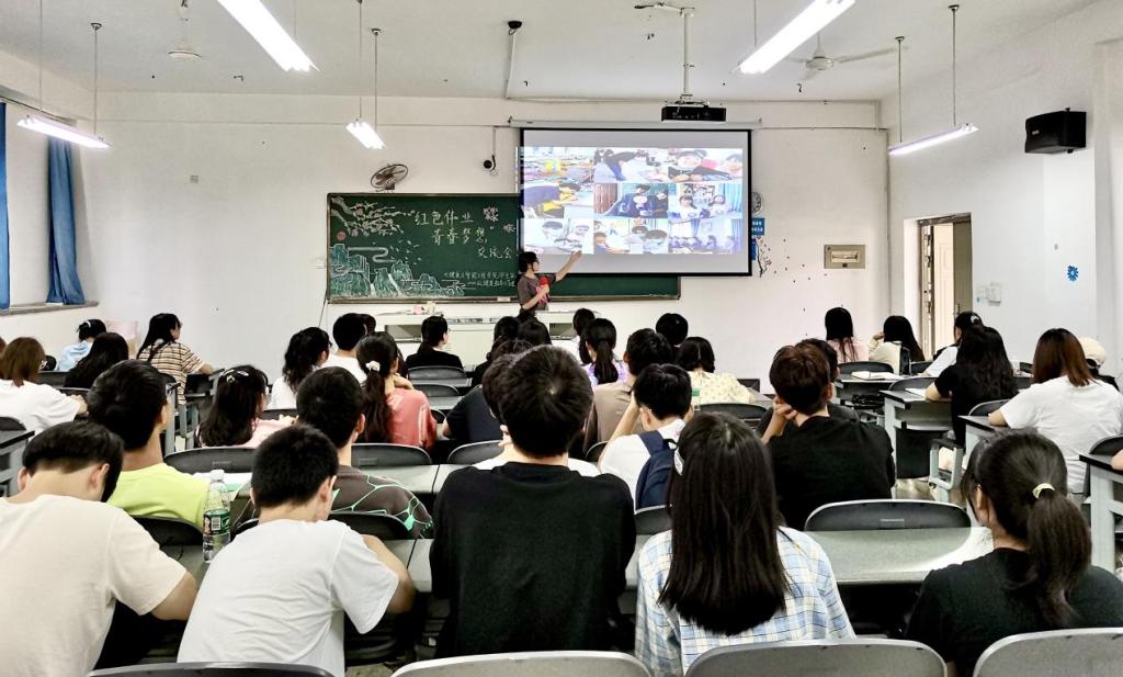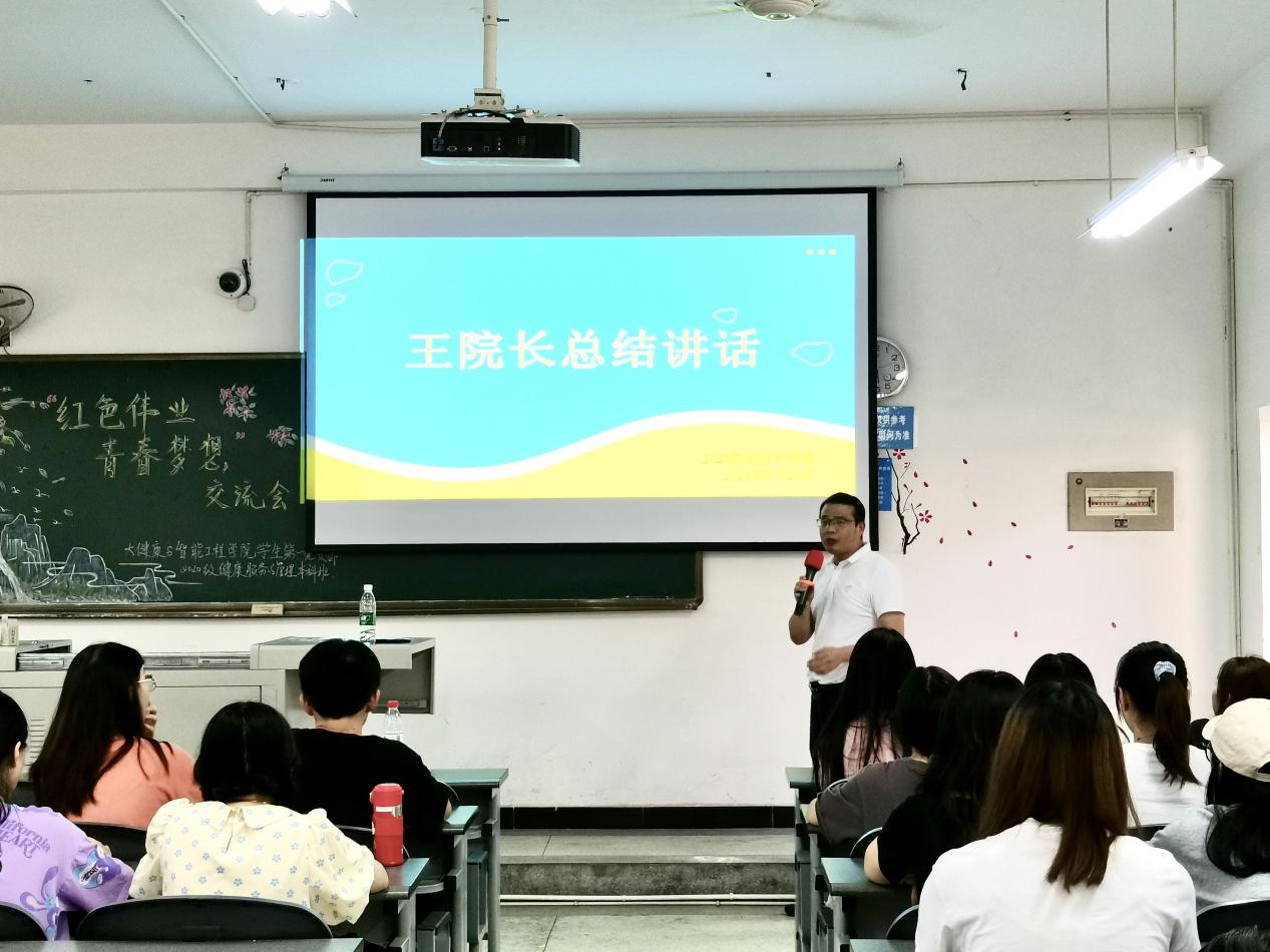 球盟会官网员工第一党支部于2021年9月24日在博学楼B409教室开展了以“红色伟业,青春梦想”为主题的交流分享会。球盟会官网入口副经理王计生莅临指导,大健康与智能工程公司党委副书记杨晓庆、辅导员罗艳荣、周彦宏和2020级健康服务与管理本科班的全体同学参加。